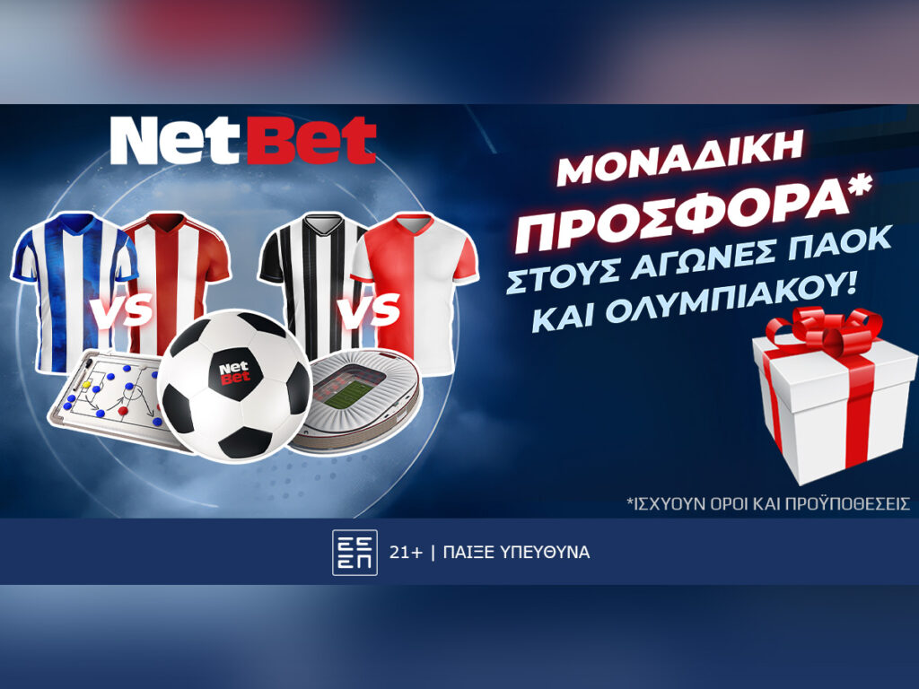 Προσφορά* ΜΟΝΟ για απόψε, με αγώνες Ολυμπιακού και ΠΑΟΚ, από τη NetBet!