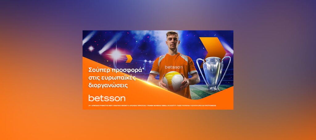 Στην Betsson θα βρείτε μία σούπερ προσφορά* για τις ευρωπαϊκές διοργανώσεις, η οποία θα τρέχει μέχρι και την Πέμπτη 23 Φεβρουαρίου.