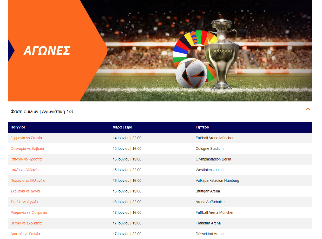 Το Ευρωπαϊκό έχει κλέψει όλο το ενδιαφέρον του αθλητικού κοινού και στην Betsson μπορείς ανά πάσα ώρα και στιγμή, να μαθαίνεις πληροφορίες για την κορυφαία ποδοσφαιρική διοργάνωση