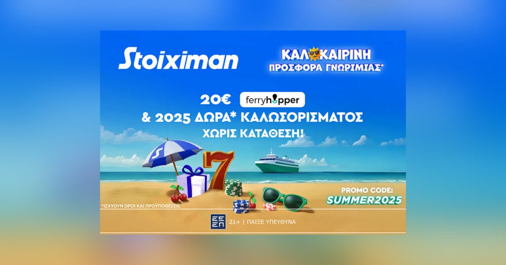 Καλοκαιρινή Προσφορά* από τη Stoiximan με 20€ Ferryhopper & 2025 Δώρα* χωρίς κατάθεση*!