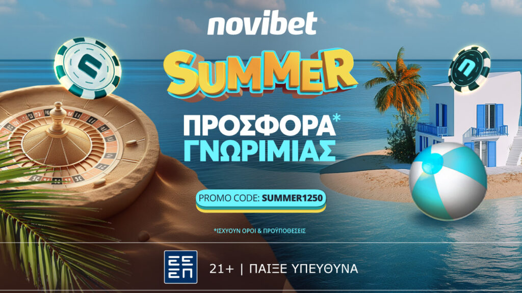 Η Novibet συνεχίζει να πρωτοπορεί στην δημιουργία μοναδικών προσφορών* και να προσφέρει μία ολοκληρωμένη εμπειρία παιχνιδιού στο κοινό. Στην προσπάθεια περαιτέρω αναβάθμισης των υπηρεσιών της, λανσάρει μία νέα, summer προσφορά* γνωριμίας, που θα είναι διαθέσιμη στην πλατφόρμα της έως και τις 20 Αυγούστου (23.59)!