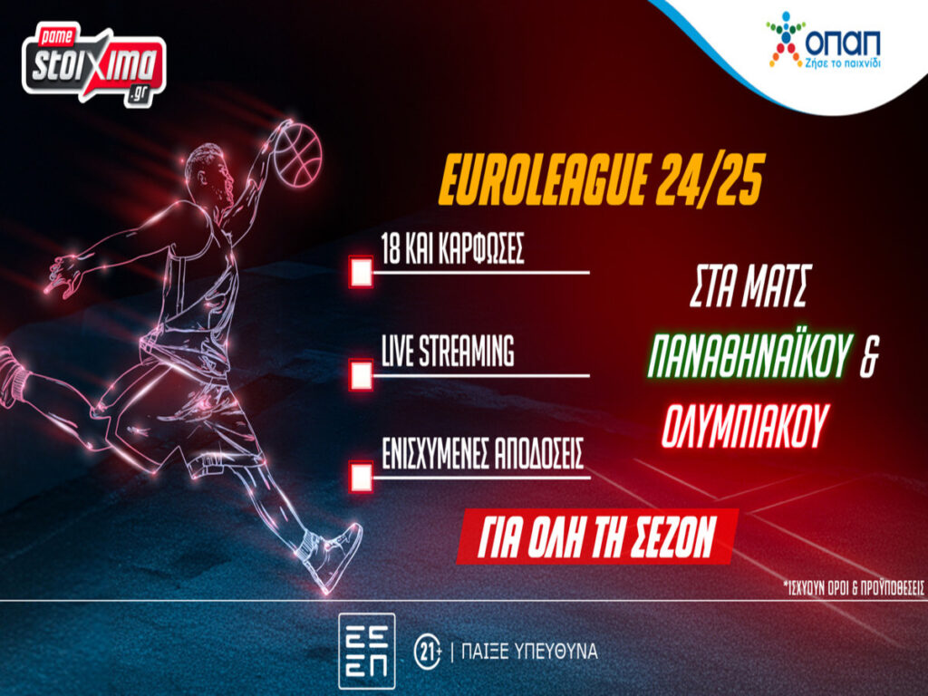 Το θέαμα της EuroLeague γίνεται ακόμα πιο συναρπαστικό στο Pamestoixima.gr, με νέες προσφορές* και αγορές!