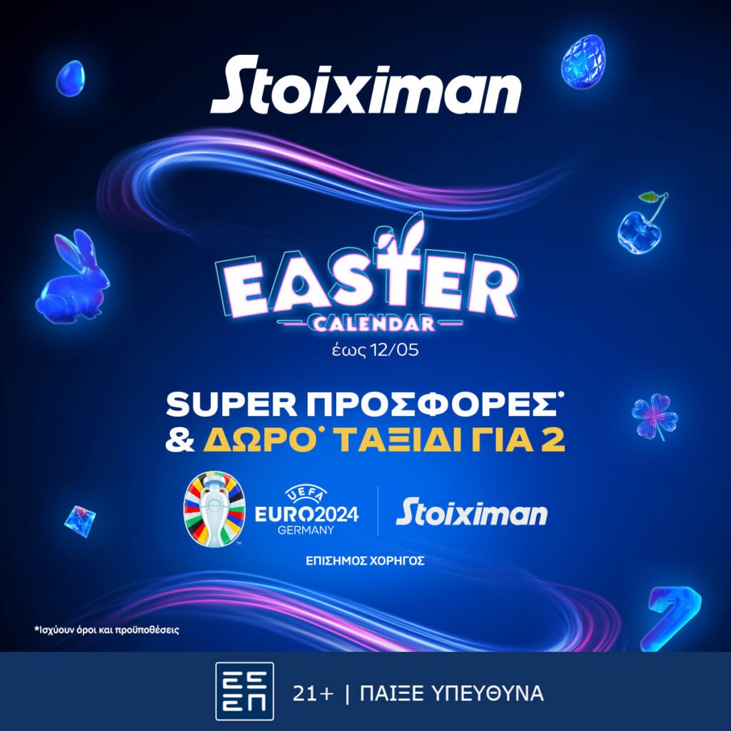 Από τις 29 Απριλίου έως και τις 12 Μαΐου η Stoiximan σε υποδέχεται με συνεχείς εκπλήξεις. Το Easter Calendar είναι εδώ με καθημερινή και απόλυτα διασκεδαστική δράση.