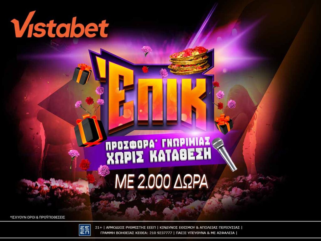Vistabet: 2.000 δώρα* από την προσφορά γνωριμίας χωρίς κατάθεση!