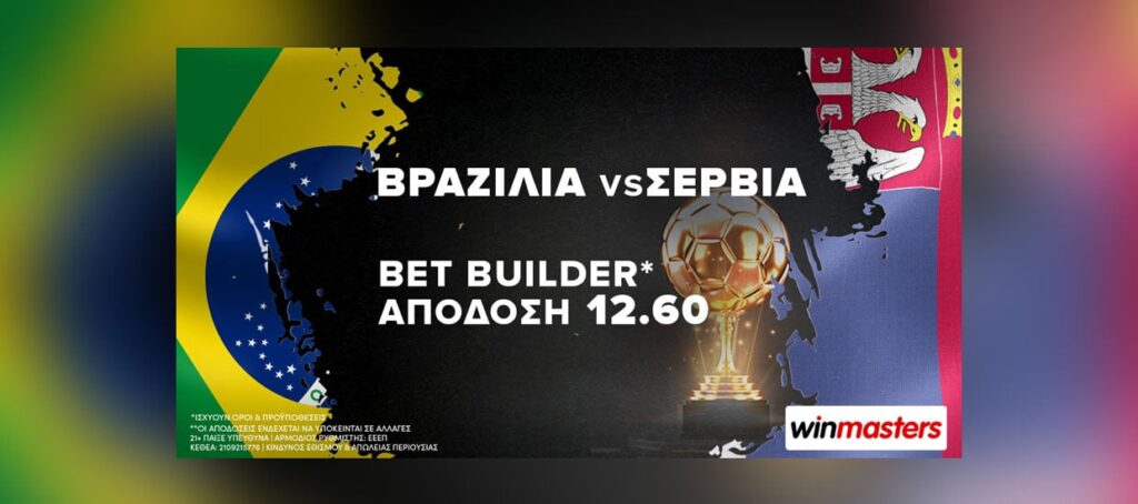 winmasters: Βραζιλία-Σερβία με Bet Builder* σε απόδοση 12.60