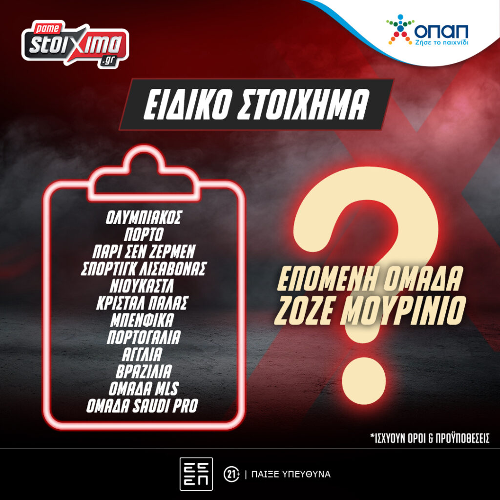 Ο Ζοζέ Μουρίνιο αναζητά ομάδα, ο Ολυμπιακός αποκλείστηκε από τον Παναθηναϊκό στο Κύπελλο Ελλάδας και στο Pamestoixima.gr βρίσκεις ειδικά στοιχήματα για τον επόμενο σύλλογο του Special One!